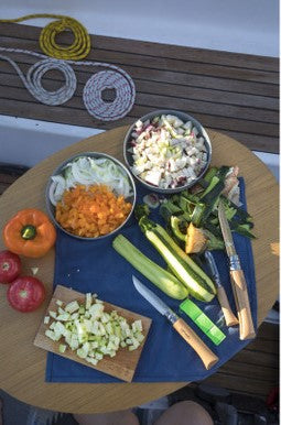 Deze Opinel Nomade Keukenset is een onmisbare metgezel voor elke reiziger die van koken in de buitenlucht houdt. Met het N°10 mes met ingebouwde kurkentrekker, N°12 gekarteld mes, zakschilmes N°06, een flesopener, snijplank en microvezeldoekje, heb je alles wat je nodig hebt om een heerlijke maaltijd voor te bereiden en te genieten van een goede fles wijn, waar je ook bent. Het compacte en lichtgewicht ontwerp maakt de set ideaal voor kamperen, picknicks of lange reizen.